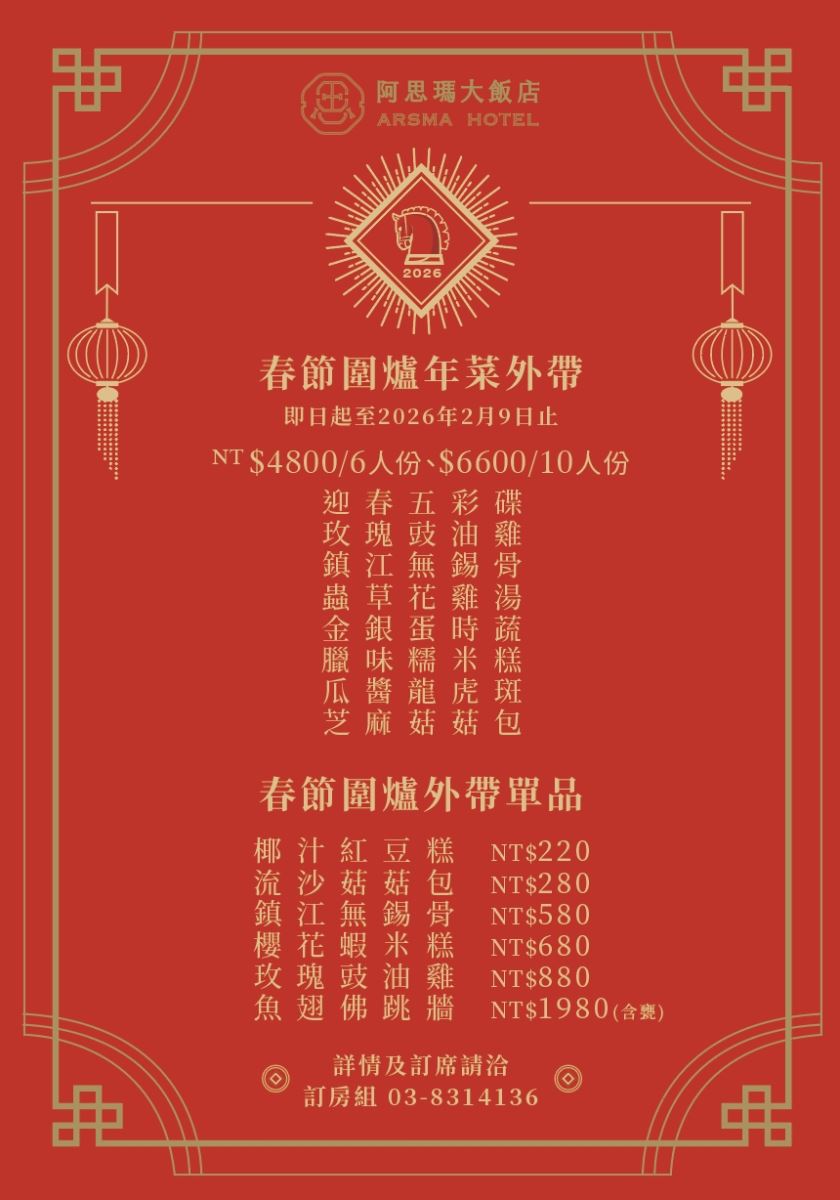 *年菜外帶領取2/16日起下午16:00-17:00止(拜拜用全雞預訂可於2/16上午10:00領取)